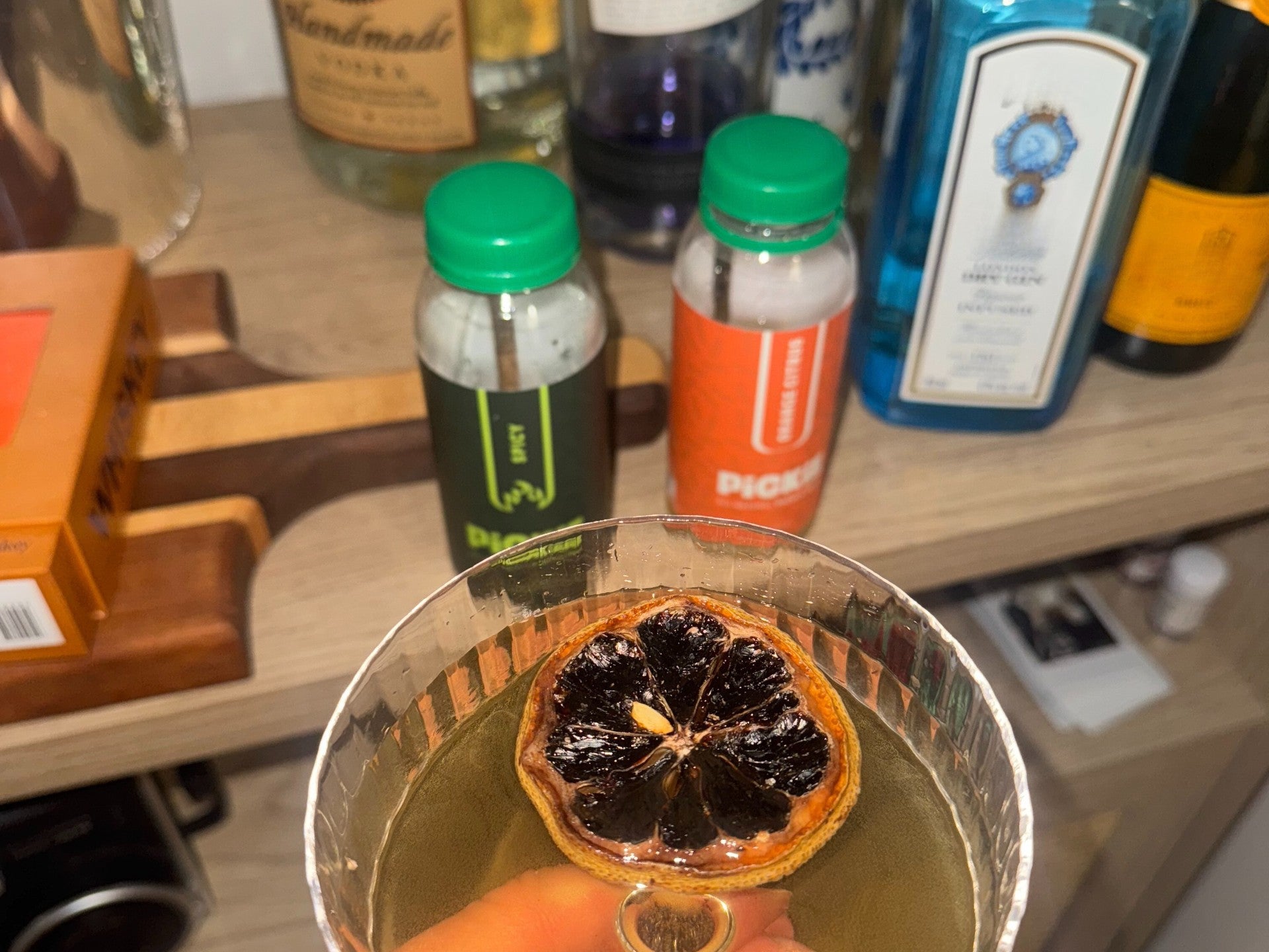 "When I’m hosting, pickle martinis are a must. I take gin, splash in vermouth, add orange bitters, and finish with half a bottle of Spicy or Orange Citrus PiCKiE - depending on who’s in the room. It’s the perfect drink for those who want a savory twist on the classic, and a crowd favorite... no olives needed."